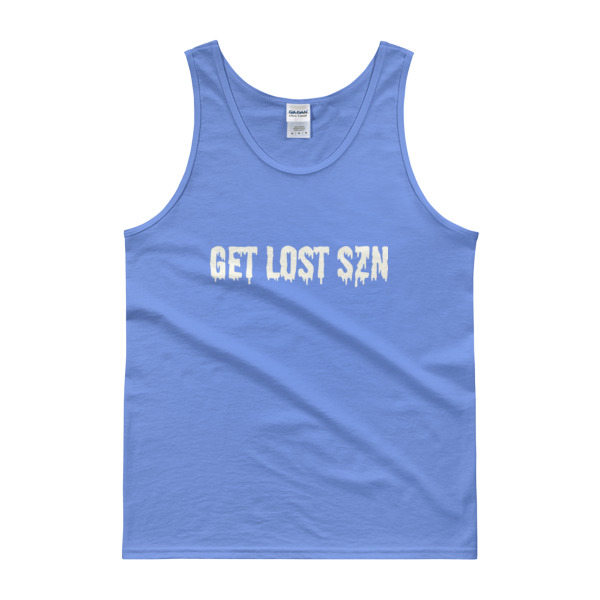 A classic fit, cotton jersey knit top. It's quarter-turned, meaning that it eliminates the center crease. Features a trendy "GET LOST SZN" logo.